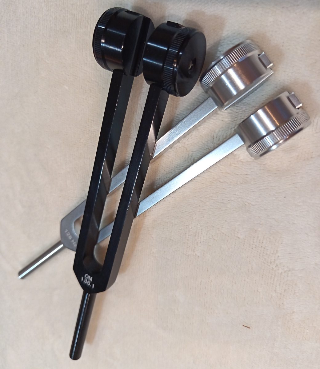 Once when working with a client using myofascial therapy I was struggling to relax and release a difficult shoulder issue. I reached over, picked up my 128 Hz and placed it on the area that felt “stuck” To my and my clients amazement the area released right away as if it had melted.